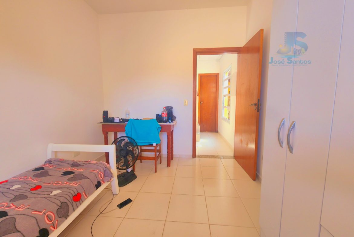 – A Casa da frente contem 03 Excelentes Dormitórios sendo, 01 dormitório na parte de baixo do imóvel e 2 na parte de cima todos com varanda, sendo 1 Suítes, 3 Banheiros, cozinha americana conjugada, churrasqueira privativa, lavanderia, quintal, entradas laterais, portões automatizados, reservatórios de água.